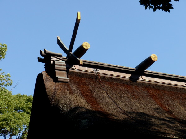 ☜境内から、社務所の屋根越しに ムクロジの木が見えます。 2011年初夏6月末の日差しに映える 若いムクロジの葉です。☞ |